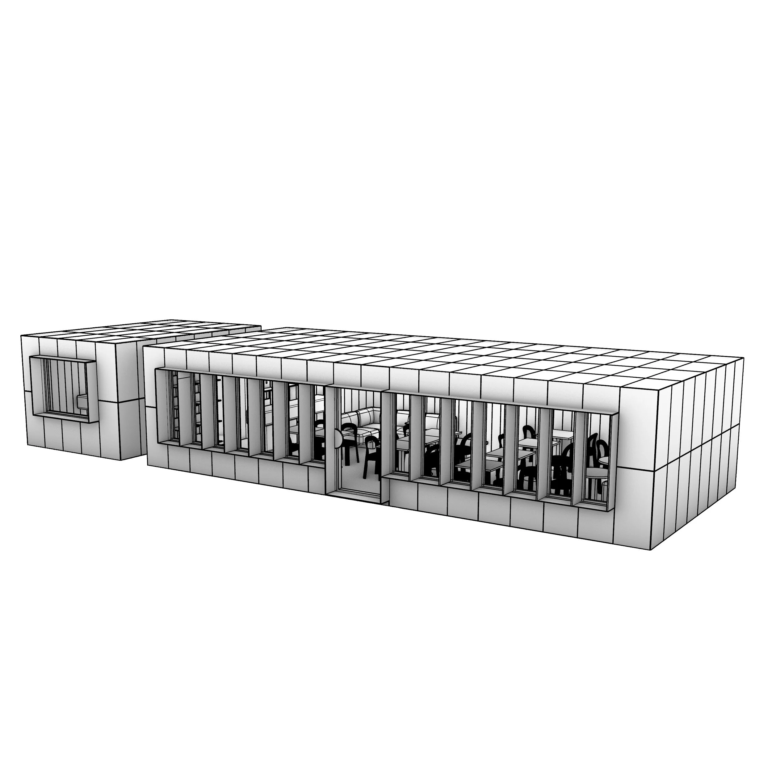 CUBI - CAFE // Take-out , an area with a serving hatch for on-the-go customers & kitchen facilities.