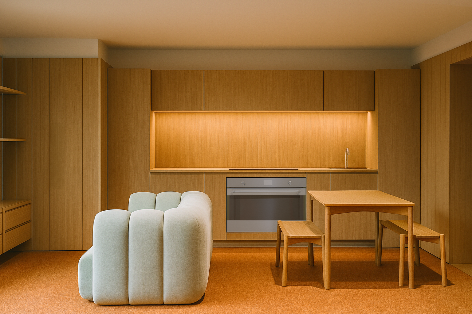 Optional full Studio MacLean interior design, including kitchen plus: under-floor heating / air flow system, concealed LED up-lighting or minimal surface-mounted spotlights.