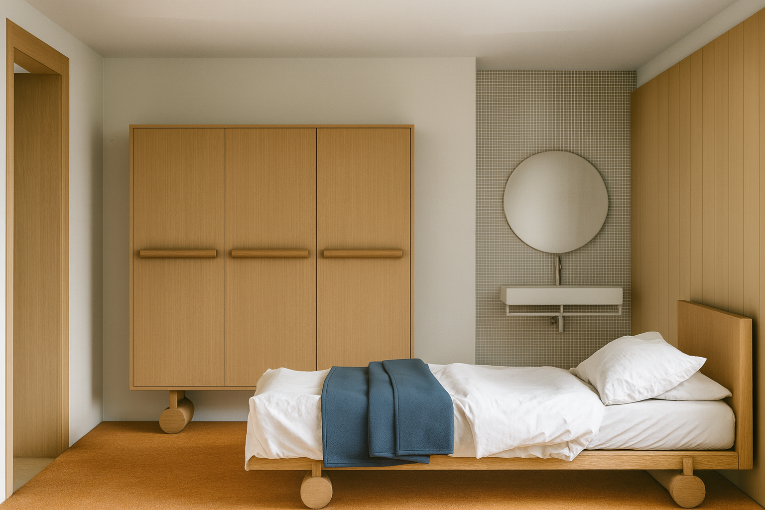 CUBI - SLEEPING // Two bedrooms with double beds. Both feature an area for a side table & storage space or wardrobe.