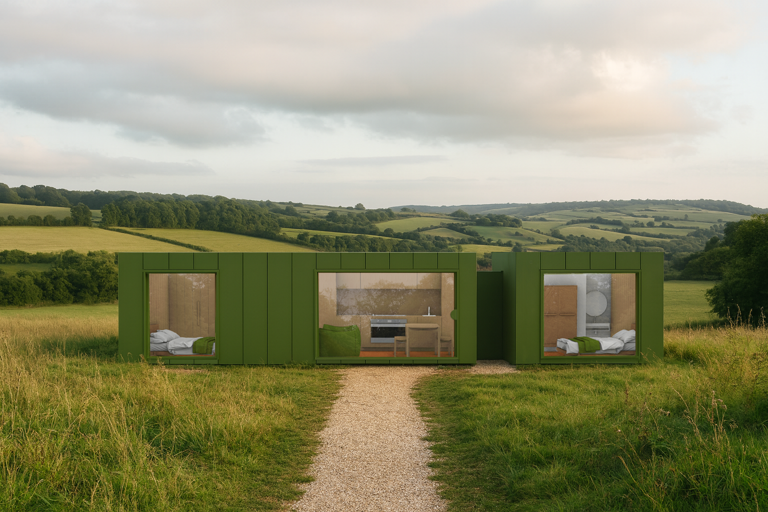 “Studio MacLean developed the full concept for a range of custom-built, fully pre-fabricated additional rooms, designed to be used as annexes or outbuildings for additional accommodation…The interiors can be configured & re-configured accordingly as you go through life.”
